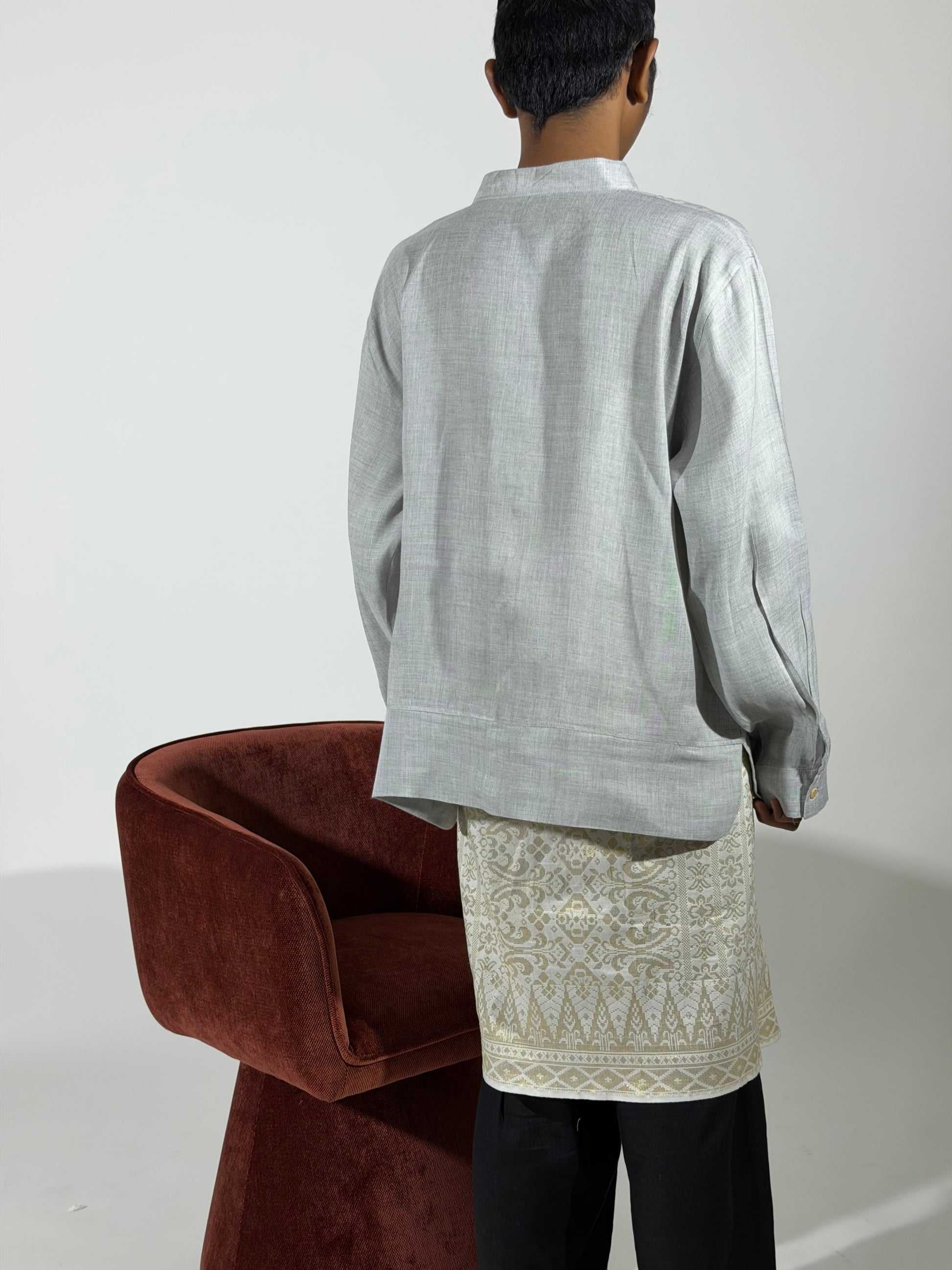 LONG SLEEVE MANDARIN COLAR SHIRT– SILVER